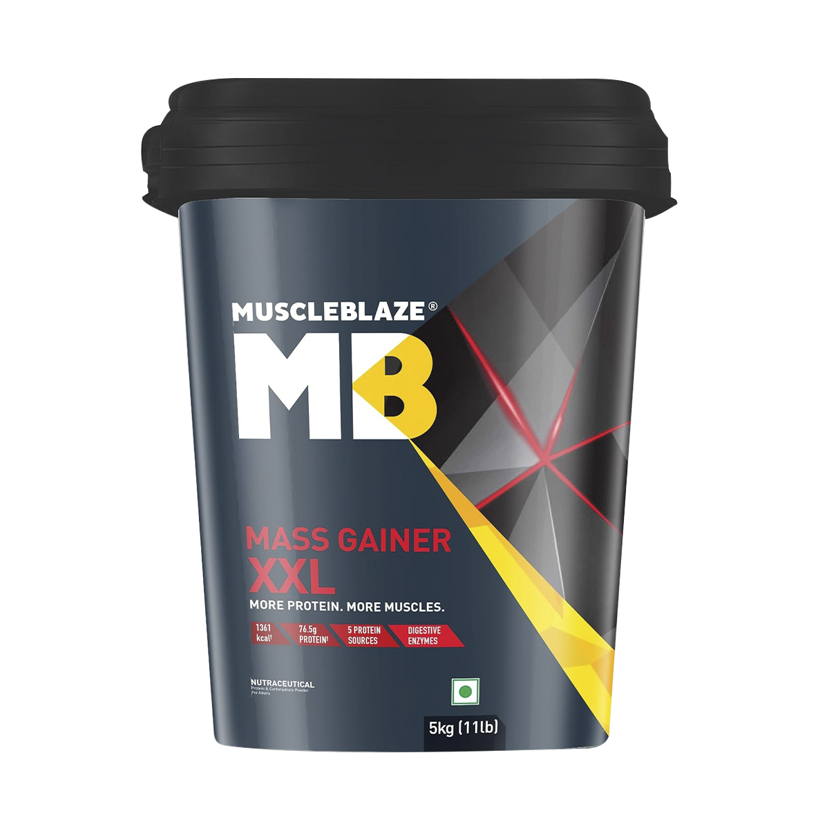 MuscleBlaze Mass Gainer XXL has a perfect blend of slow, medium and fast-reacting proteins that enable speedy muscle recovery and maximize muscle size. It is also enriched with 27 essential vitamins & minerals and a great blend of digestive enzymes that help in better absorption of nutrients and achieve the best results.